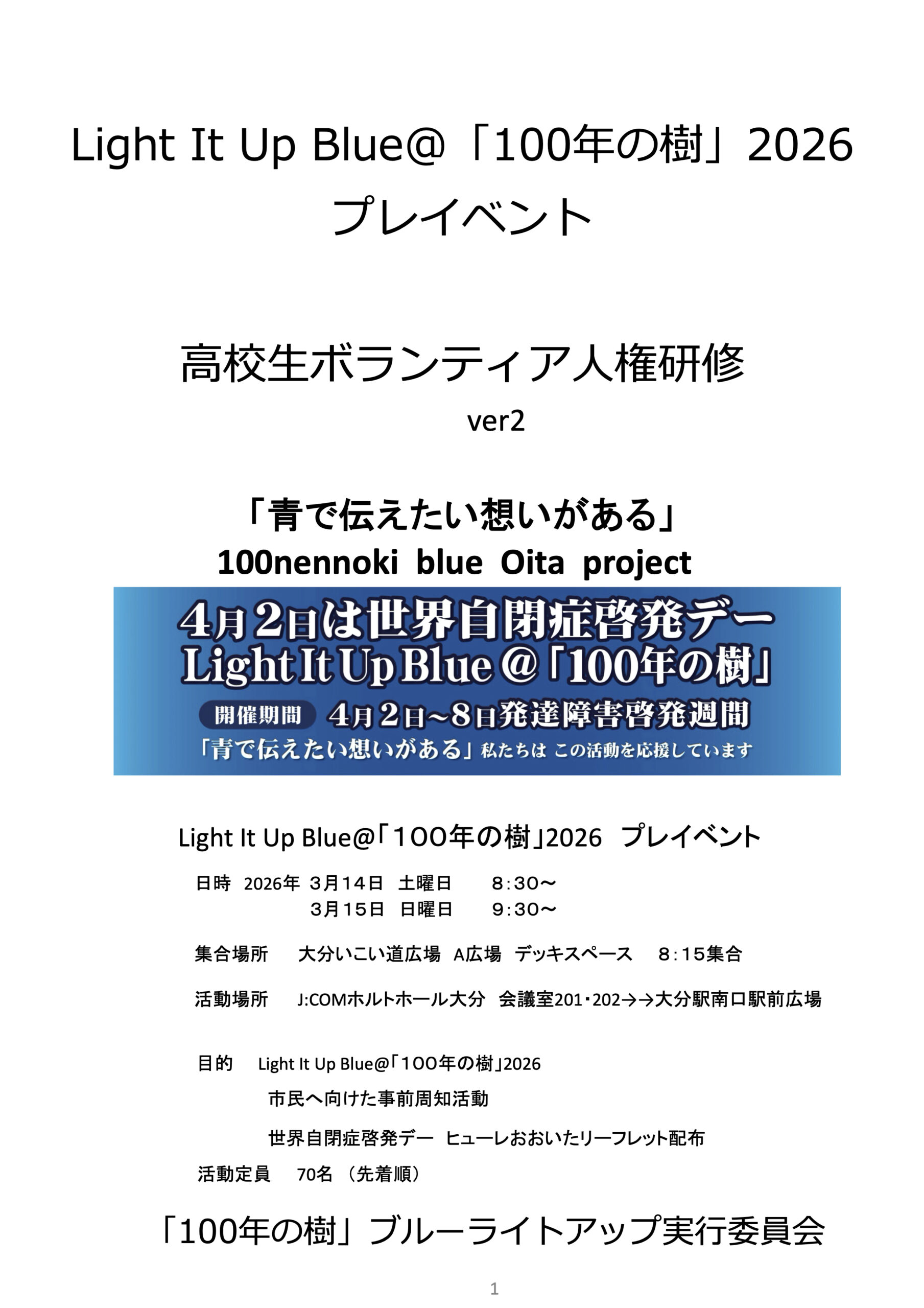 投稿日: 2025年12月5日2025年12月5日Light It Up Blue@「100年の樹」2026 プレイベント ボランティアのお願い Light It Up Blue@「100年の樹」2026 プレイベント 詳細は 下記の資料をご確認ください 2026プレイベントver2(20250808) 2026プレイベントver2(20250808)